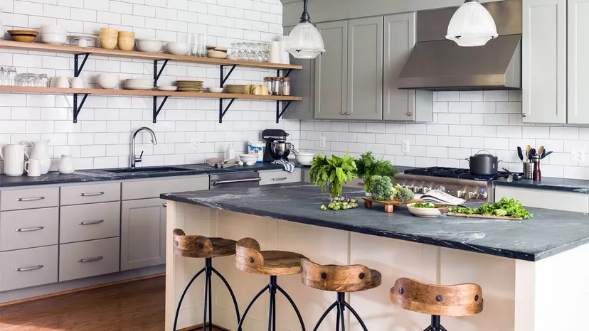 При выборе материала столешницы Карбия говорит, что важно спросить покупателей, как они живут. Для домовладельца, который быстро убирает, мрамор может стать хорошим вариантом, но для тех, кто, как правило, оставляет соус на всю ночь, или тех, кто делает много развлечений, мыльный камень может быть более подходящим, потому что он непористый и не окрашивается, как другие камни.